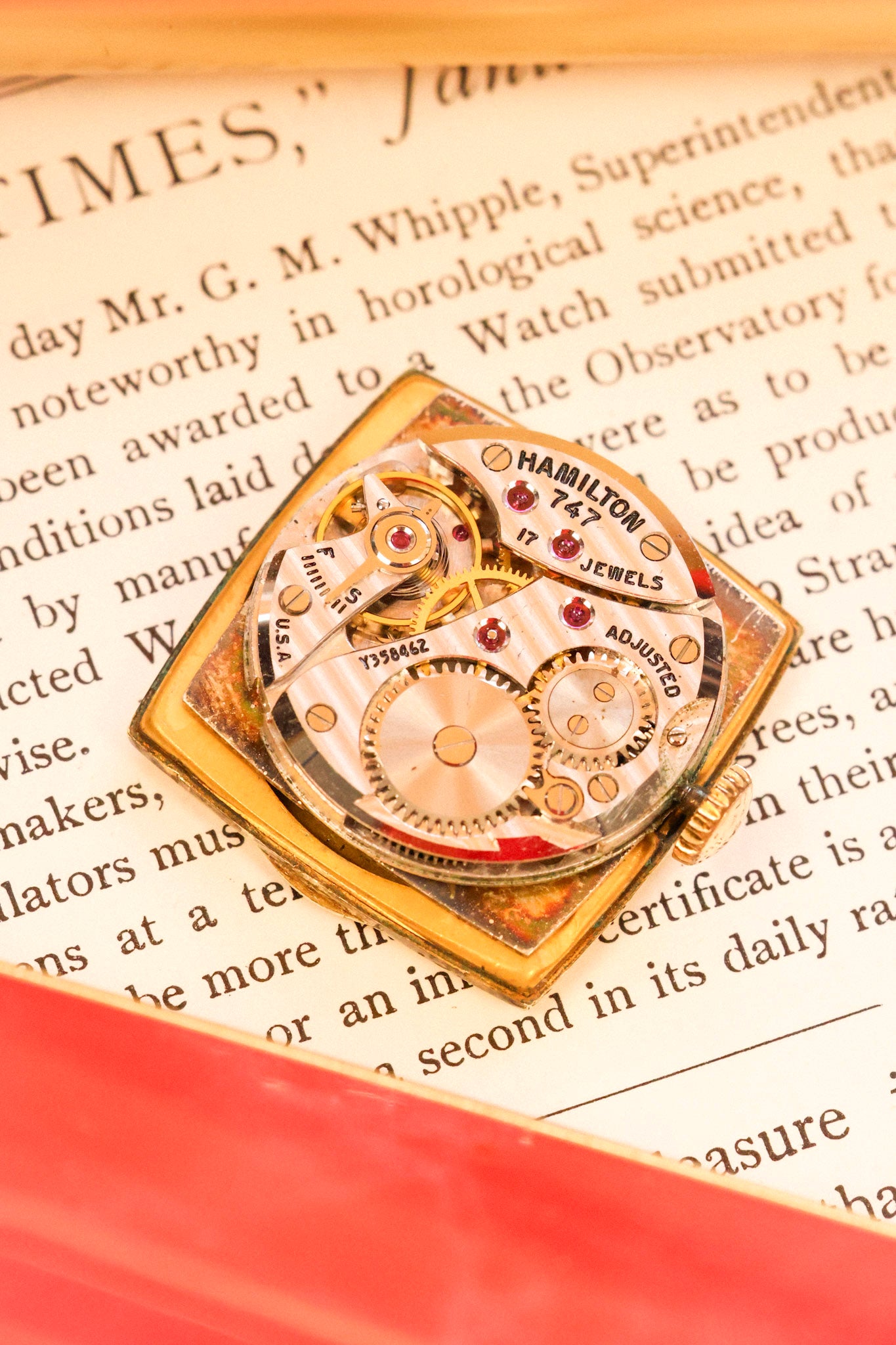 Movement: Hamilton USA Made Mechanical Manual Wind Cal. 747 - 17 Jewels. Time only. Sub seconds. Runs and keeps time within -32 seconds per day. Although running, we do recommend getting this timepiece a service for optimal timekeeping and longevity. If you would like us to service this watch, please reach out to us via Instagram or email after purchasing. Our price for a Full Service will add $159 and approx. 4 weeks turnaround time.