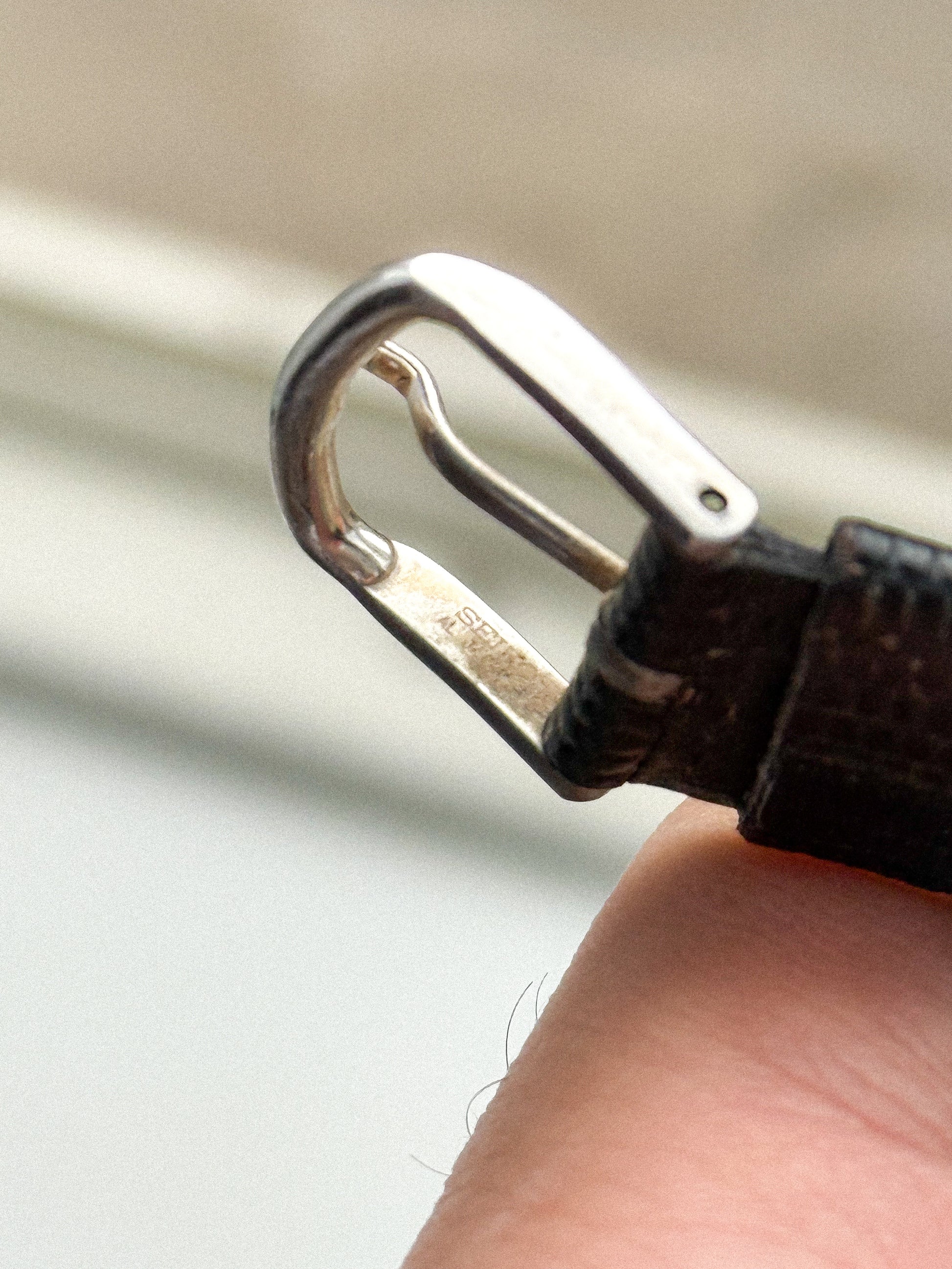 Absolutely stunning Seiko with gold tone case, thick lugs, white sector dial with printed Roman numerals, elegant leaf hands, and original crown. Comes with its original croc grain black leather strap in pre-loved condition and original signed buckle.